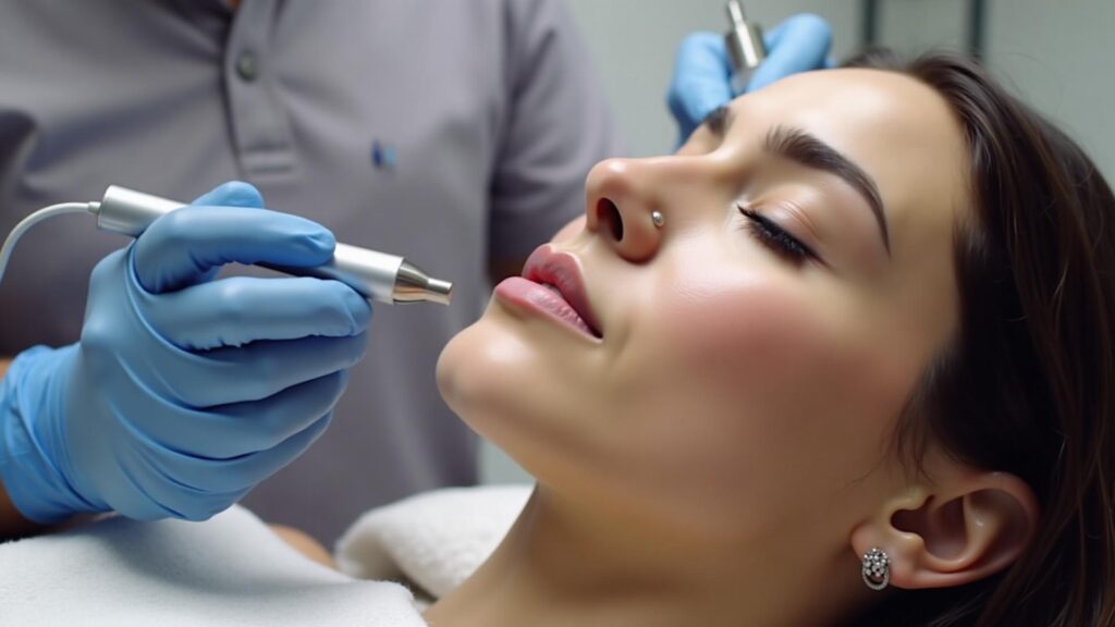 The selected treatment (laser, microneedling, or filler) is performed with precision and care.
